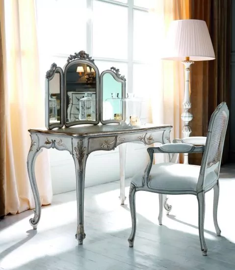 Feminin, feiner Landhaus-Charkter oder Bohemian Chic - der Tisch JANNO ist nicht nur zweckdienlich, sondern beherrscht auch die hohe Kunst der Verwandlung. Kombiniert mit einem dreiteiligen Spiegel wird aus dem Schreibtisch ein Schminktisch. So wandelbar wie in seiner Funktion ist der Tisch JANNO auch bei der Oberfläche. Sie können wählen zwischen antikisiertem, poliertem oder gekalktem Look, Auch das Farbspektrum reicht von Cremetönen bis hin zu tiefem Schwarz. Gerne beraten wir Sie per Telefon oder in unserem Ladengeschäft.