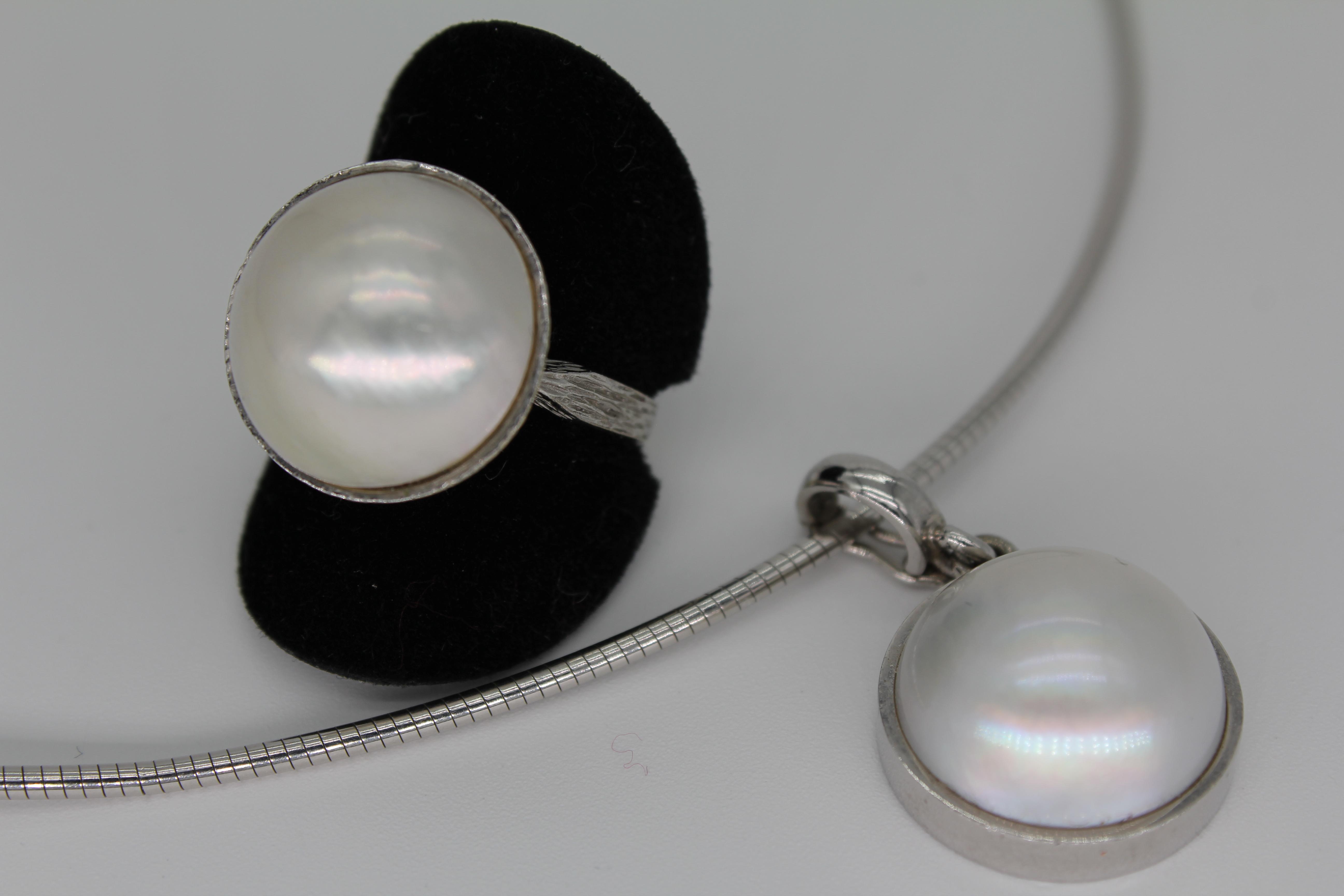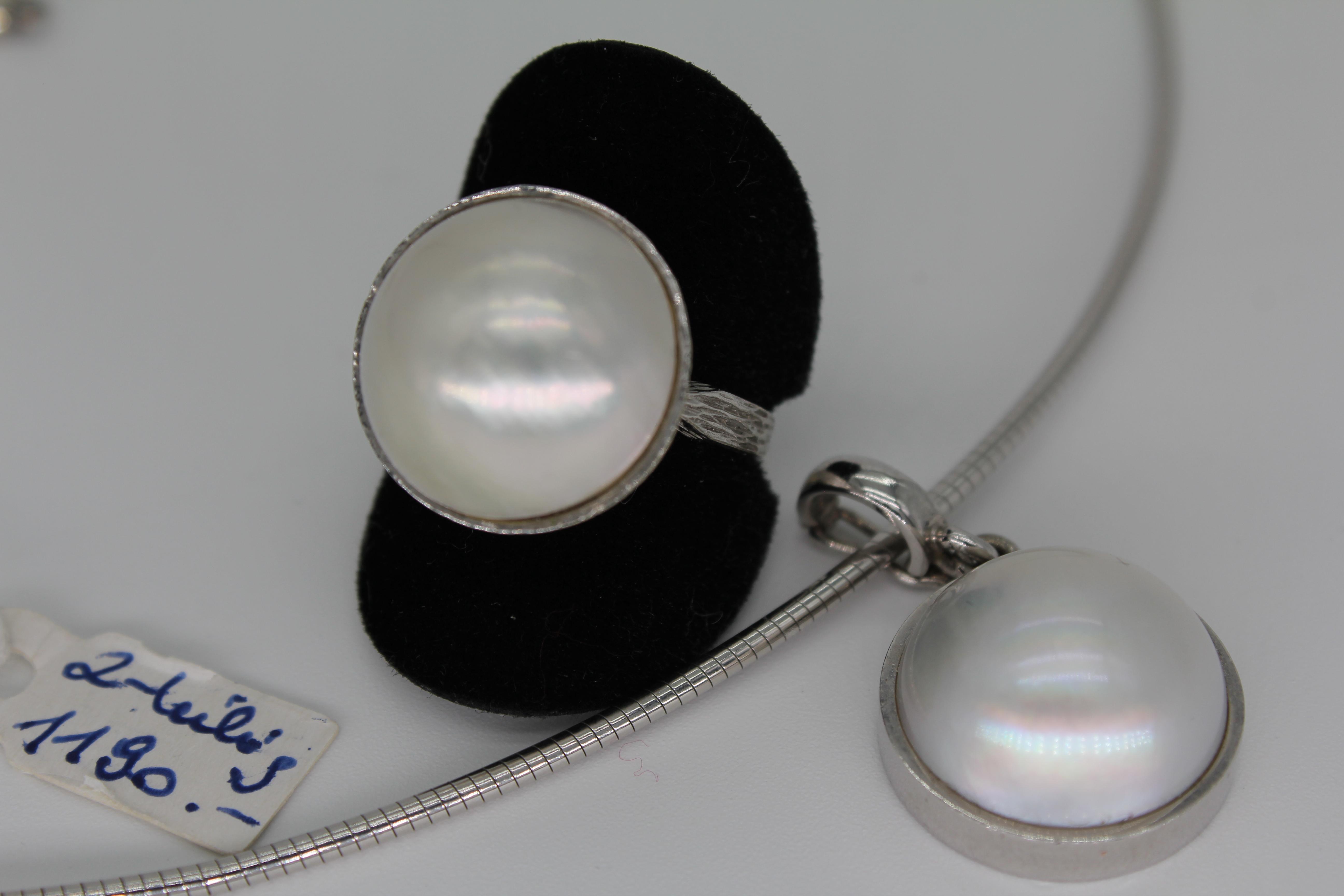 Halsreif und Ring mit Akoya Perle